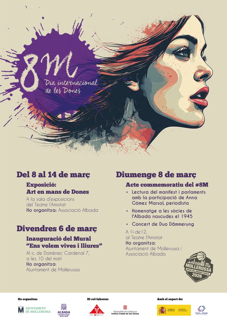 Mollerussa se suma un any més a la commemoració del Dia Internacional de les Dones amb un programa d’activitats que té com a objectiu fer valdre la lluita per la igualtat de gènere i donar visibilitat al paper de la dona en la societat.